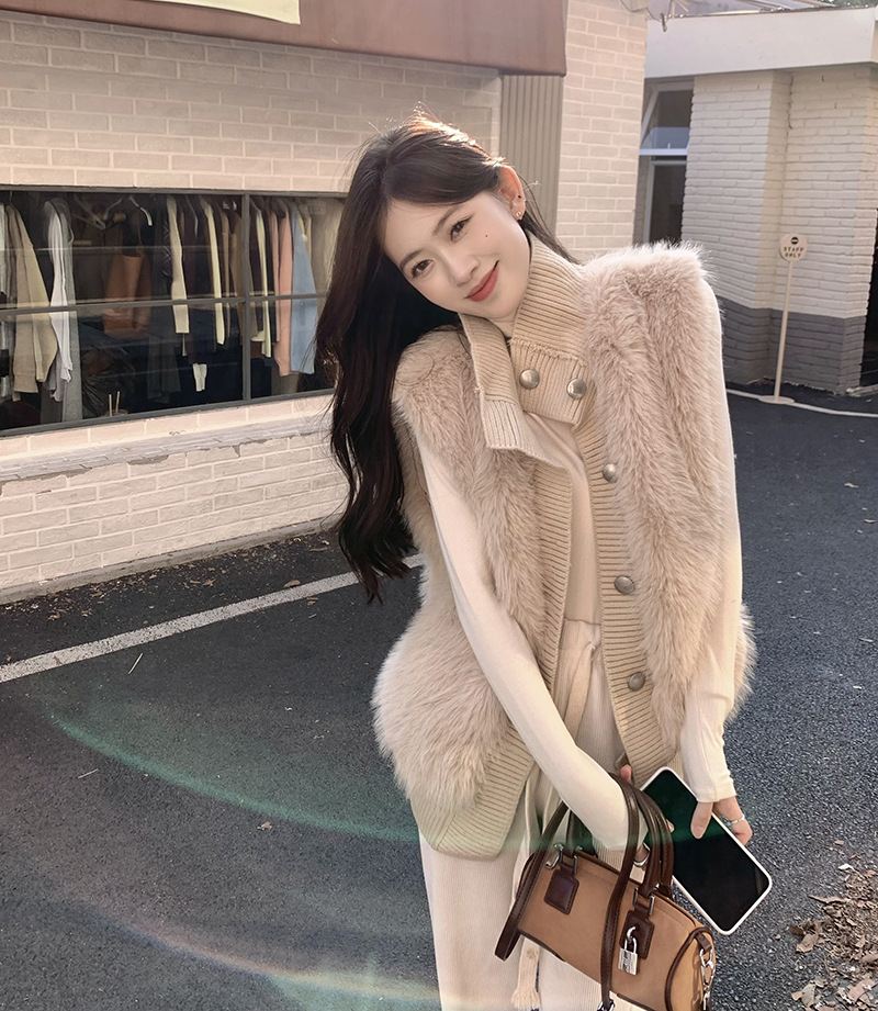 上品なファー素材とニット素材の組み合わせが魅力的なレディースベストです。