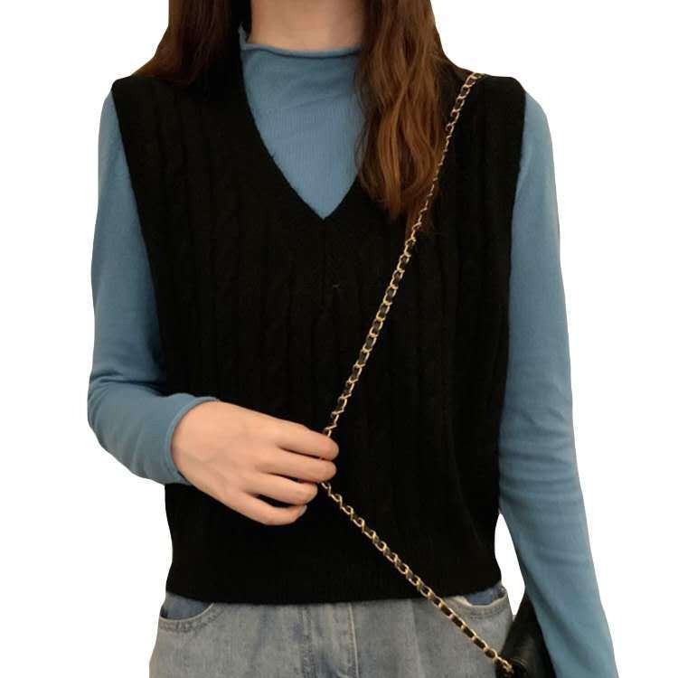 クラシックなケーブル編みが魅力的なレディースベストです。 深めのVネックデザインで、タートルネックやシャツとの重ね着が楽しめます。 ニット素材ならではの柔らかな風合いで、秋冬の着こなしに程よい暖かさをプラス。 リブ仕上げの襟元と裾がすっきりとした印象を演出します。 カジュアルからきれいめまで幅広いスタイルに合わせやすく、デイリーに活躍する一枚です。