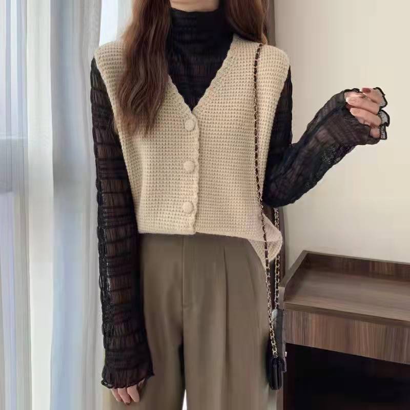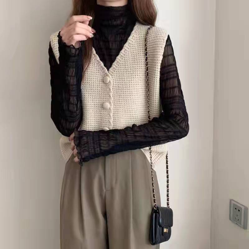 透け感のあるブラウスやタートルネックと重ね着すれば、季節を問わずおしゃれに着こなせます。
