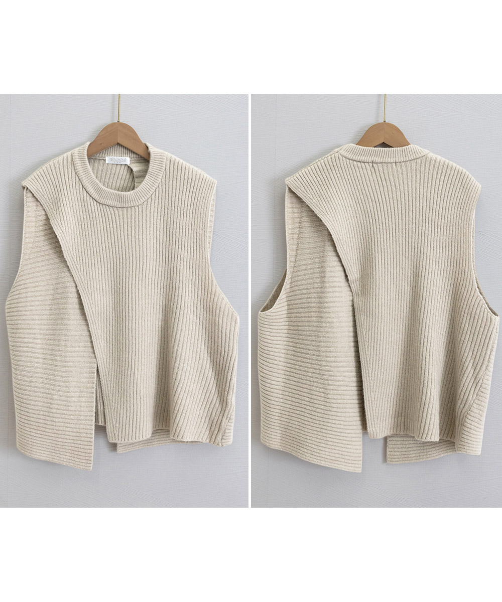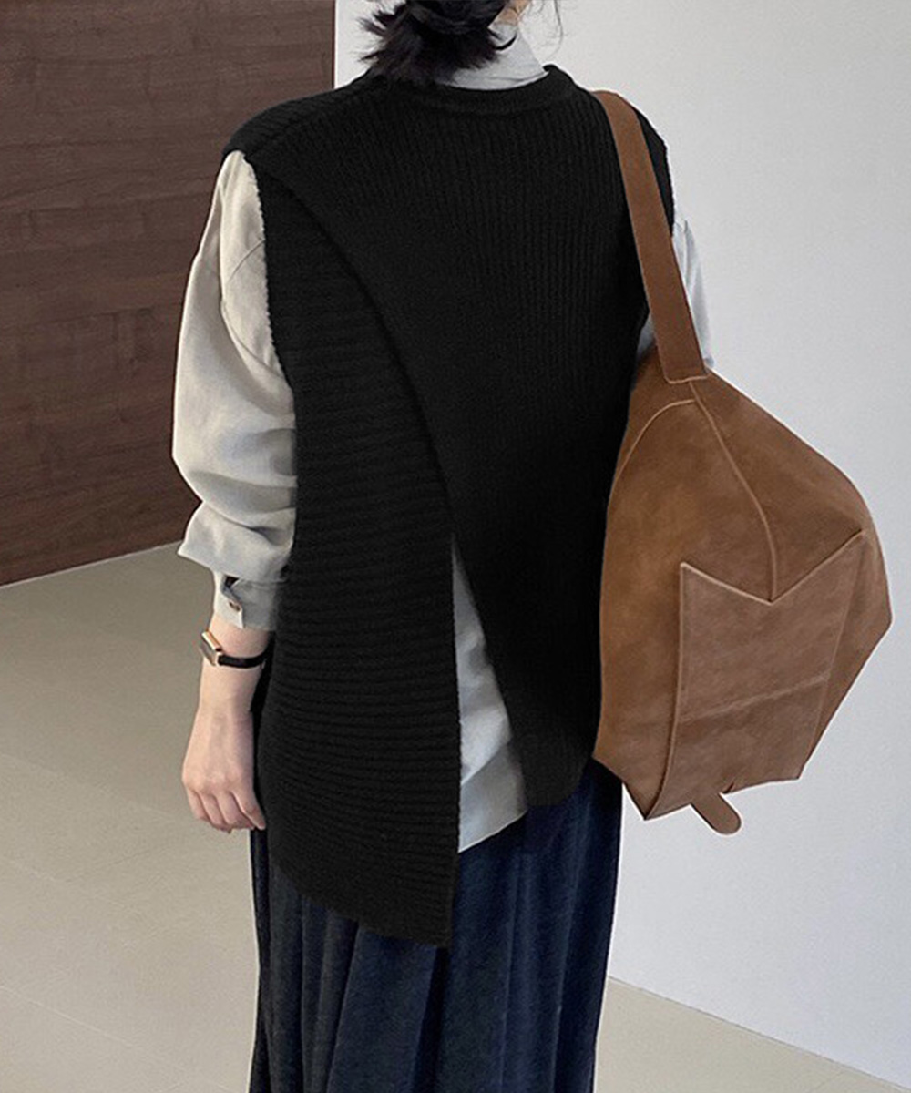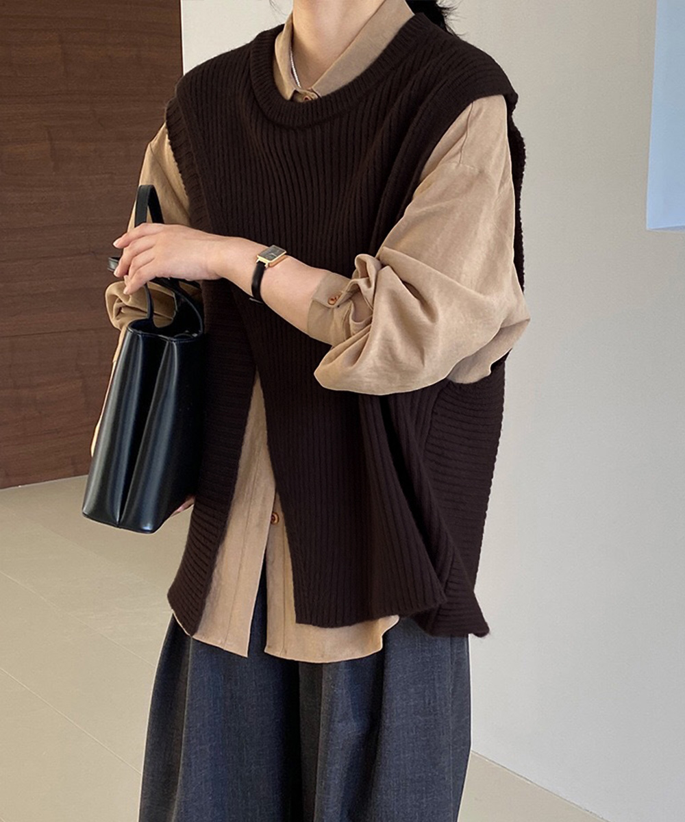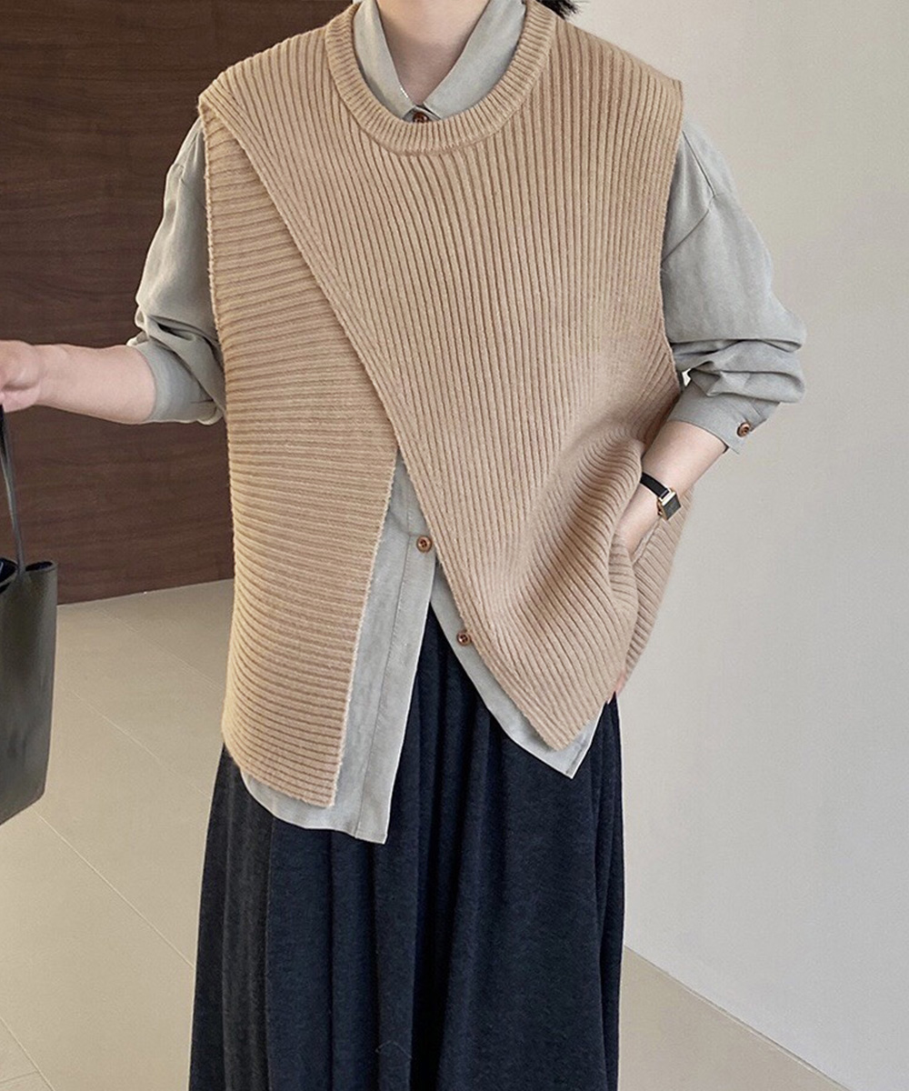 前後スリット入りのデザインがおしゃれな印象を与える、秋冬新作のレディースベスト。 リブ編みの立体感とゆったりシルエットで抜け感を演出し、レイヤードスタイルに最適。 シャツやワンピースに重ねるだけで、通勤やお出かけの大人カジュアルコーデに活躍。